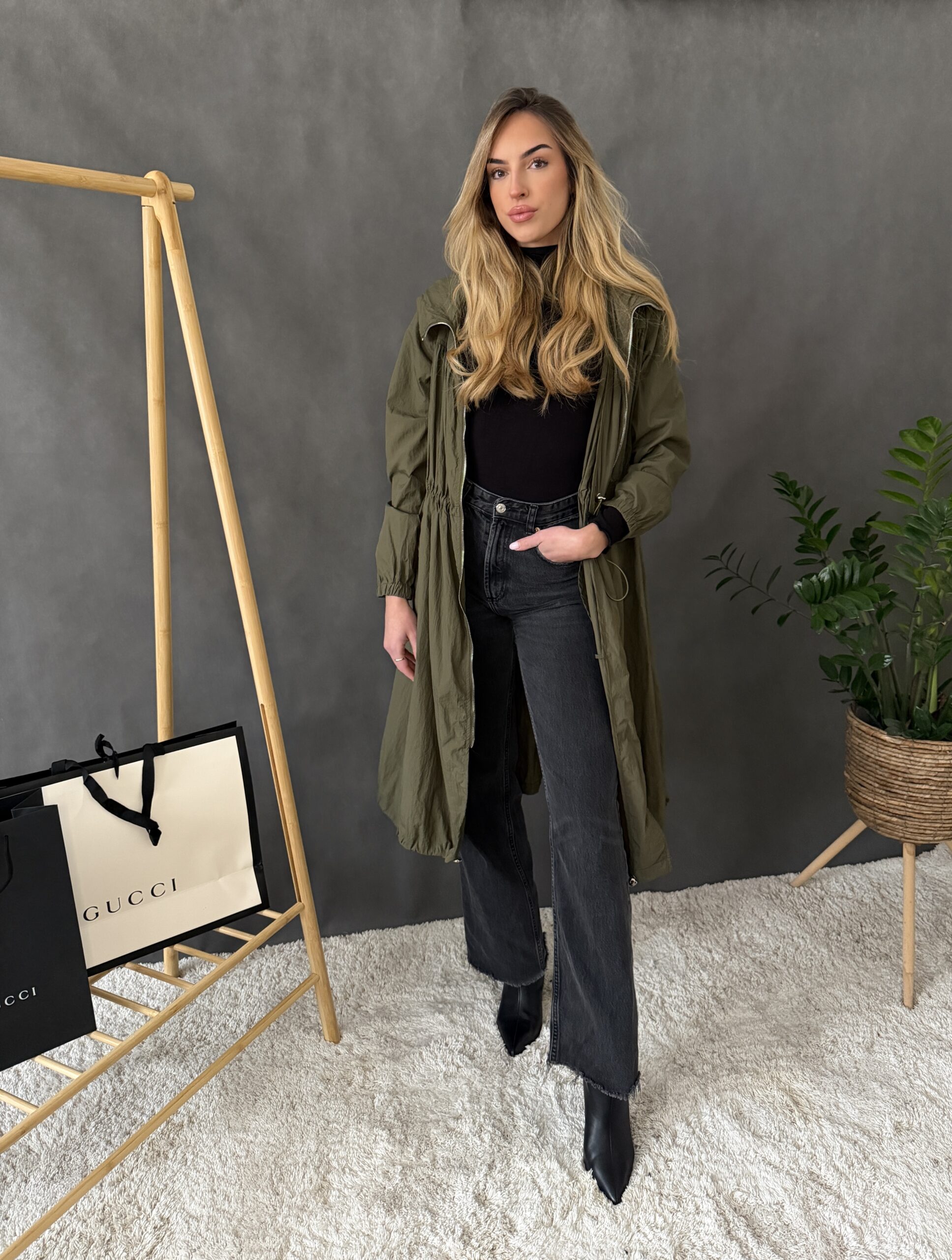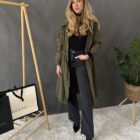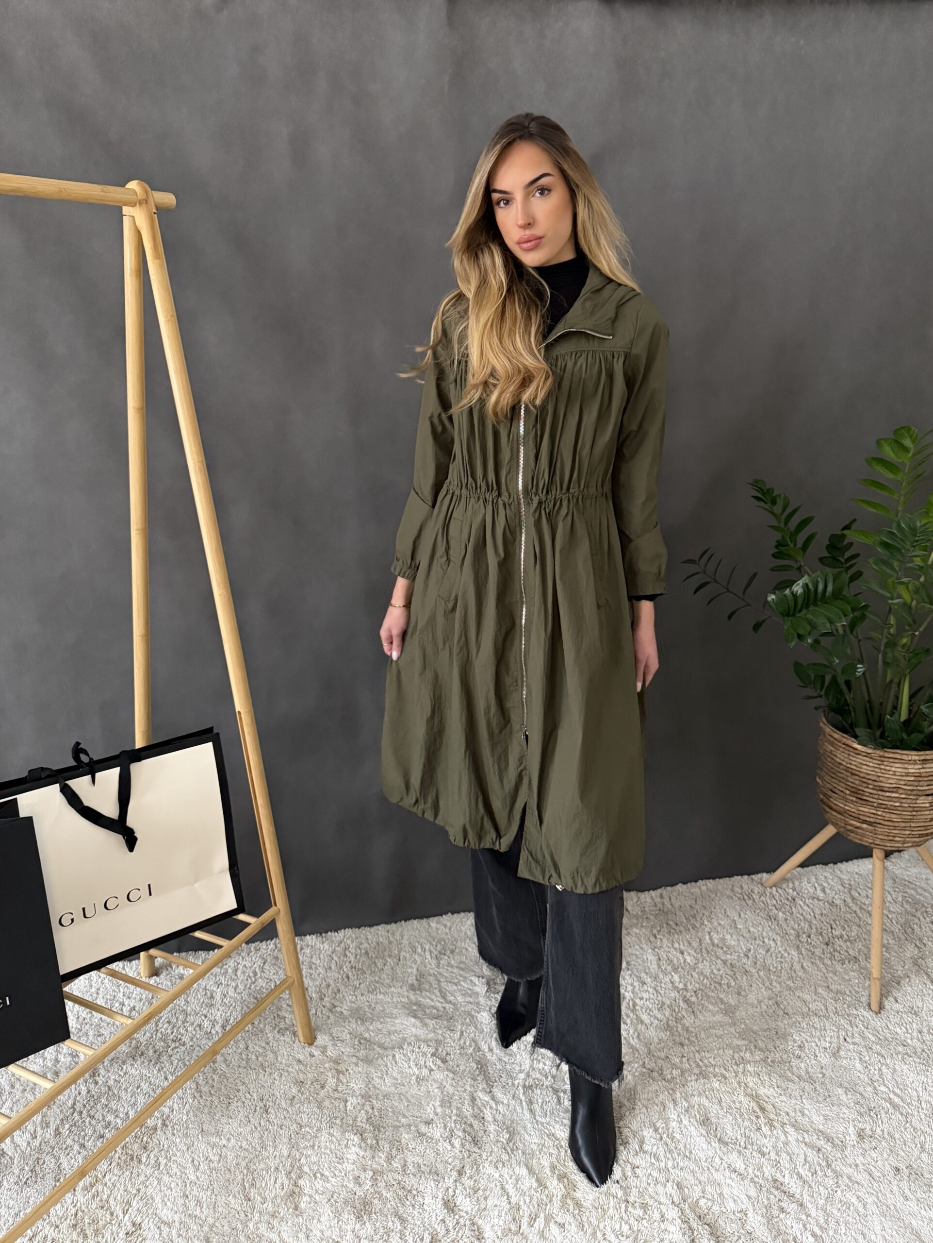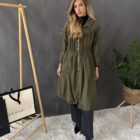 Štýlový plášť na zips s vreckami a kapucňou.