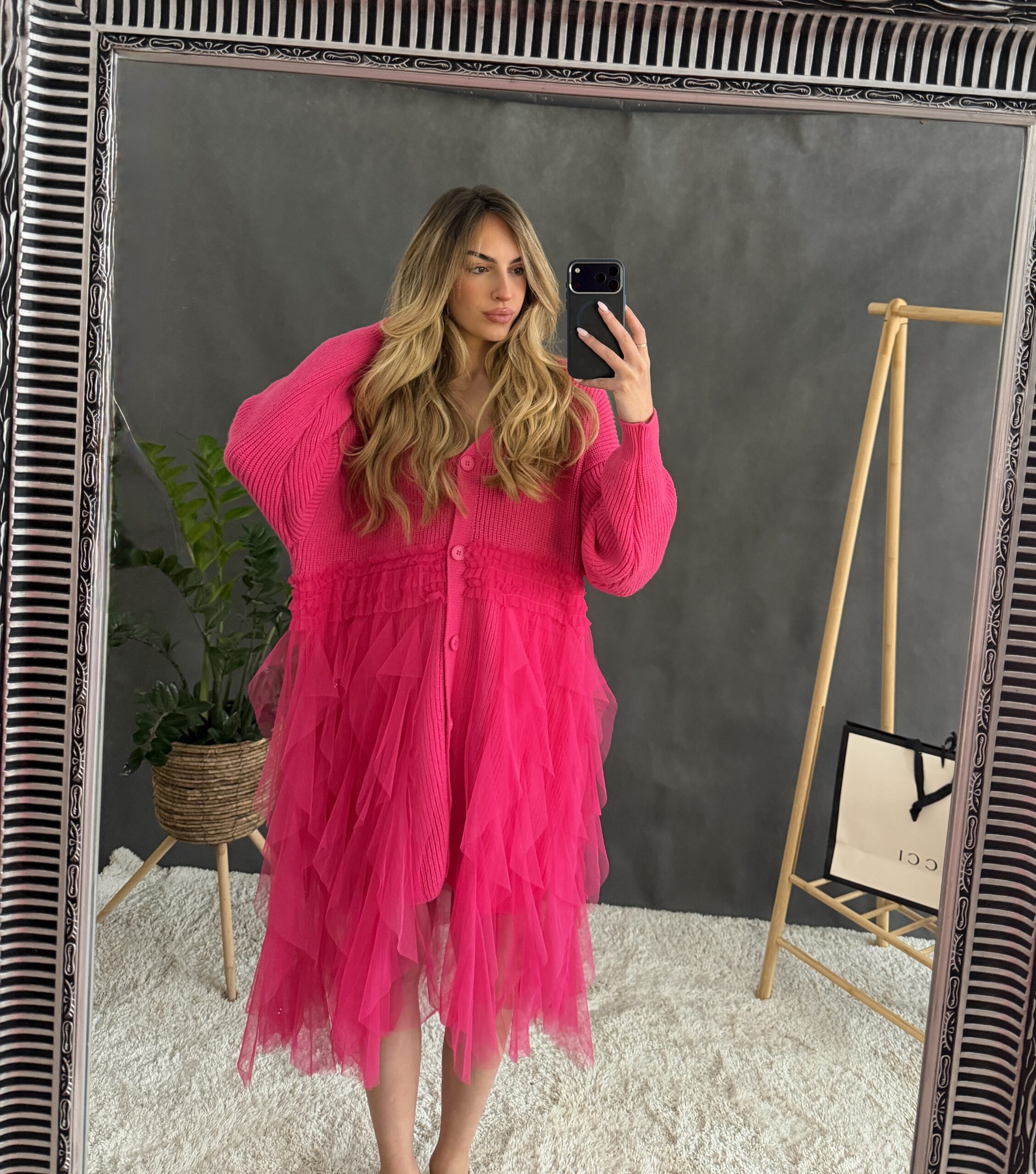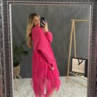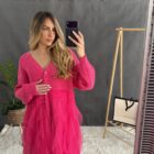 Úpletové šaty s volánmi a gombíkami.