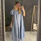 Bavlnené šaty voľného strihu. Šaty majú vrecká.