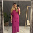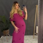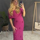 Maxi šaty okolo pliec s kvetmi. Šaty sú elastické.