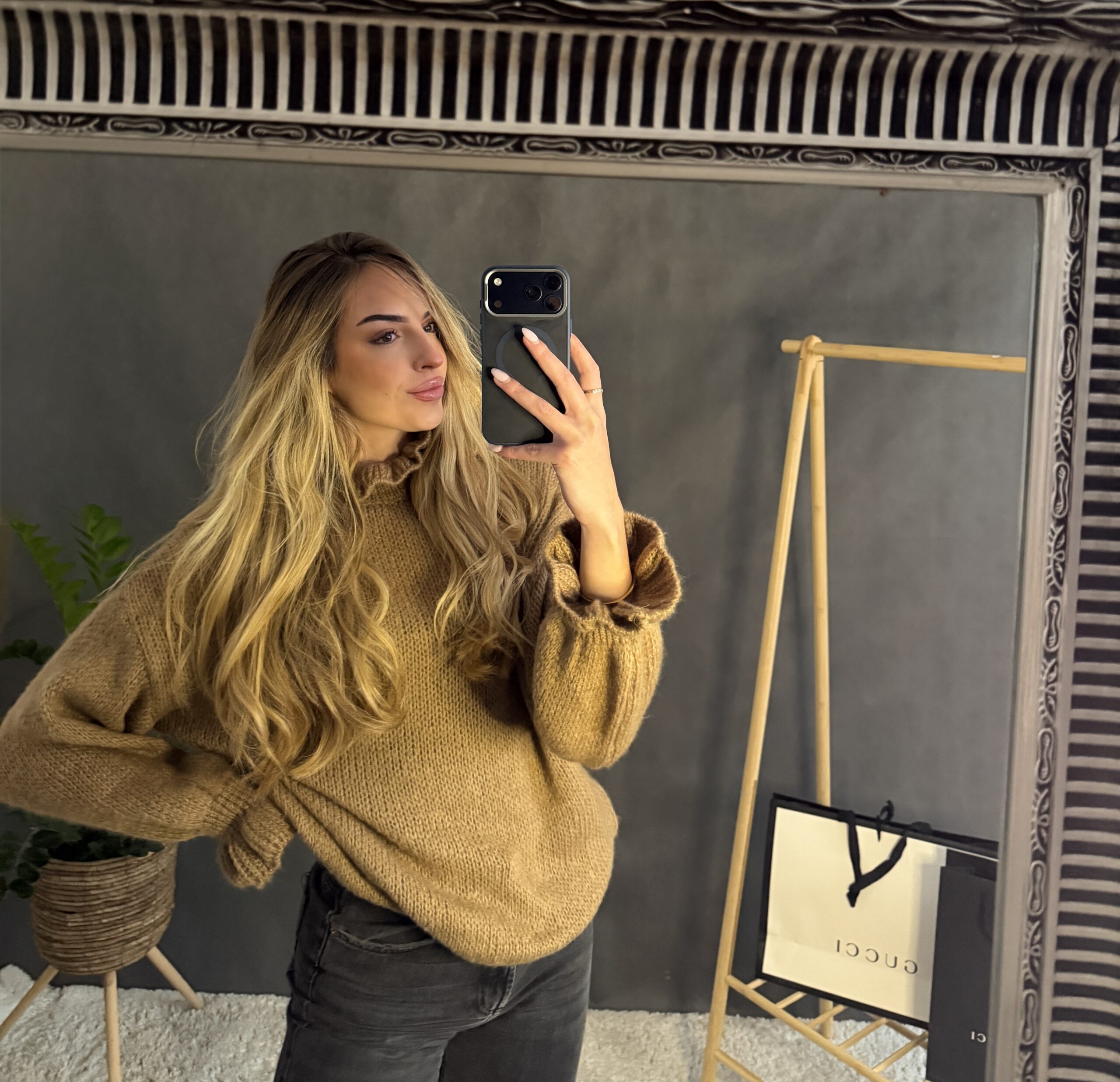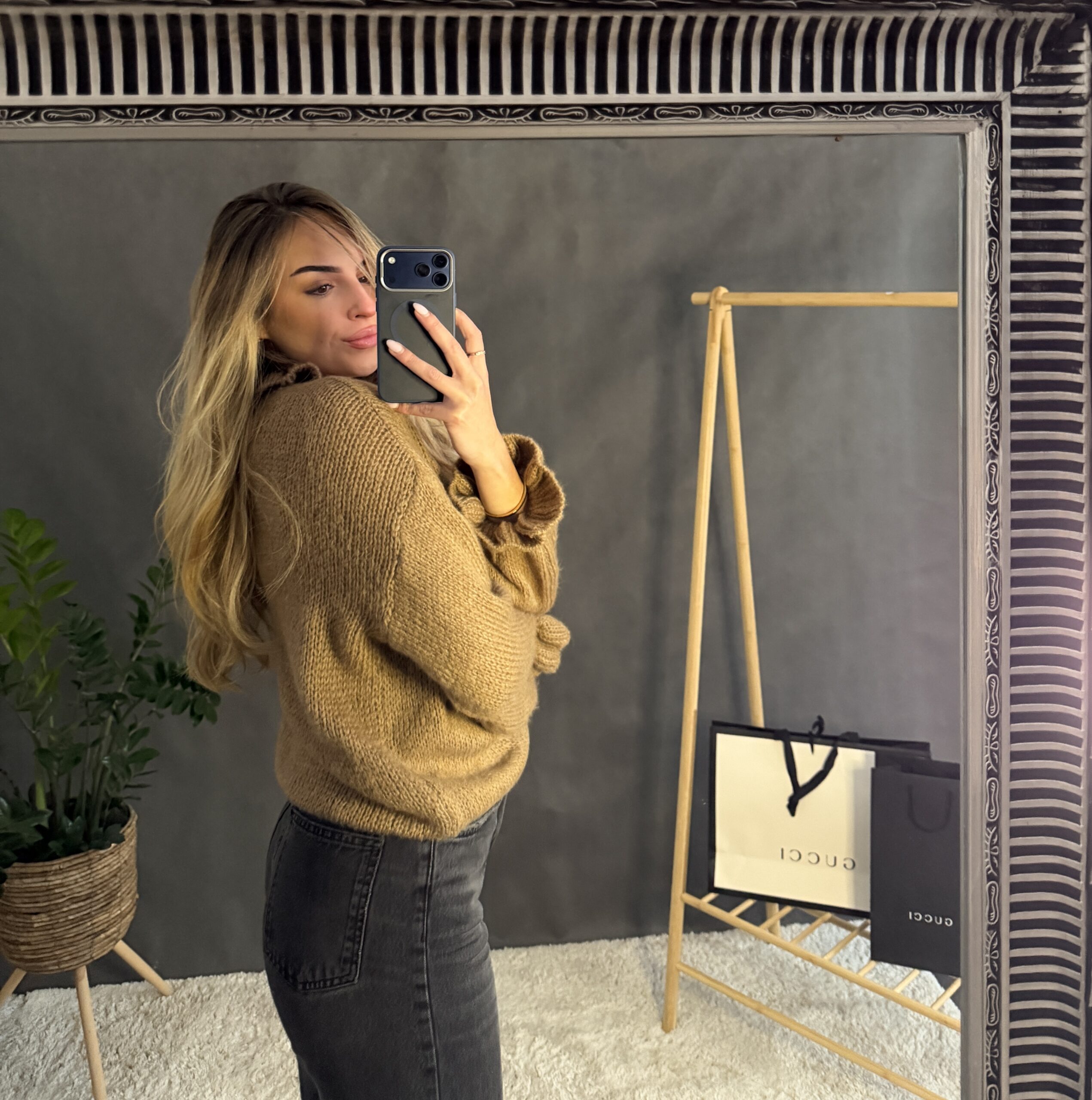 Jemný svetrík, tenkého materiálu so stojčikom.