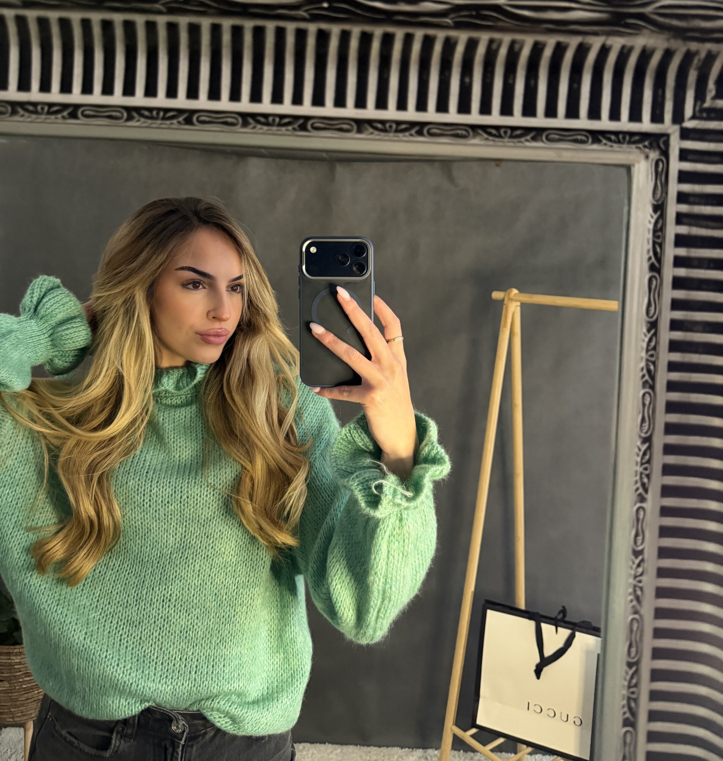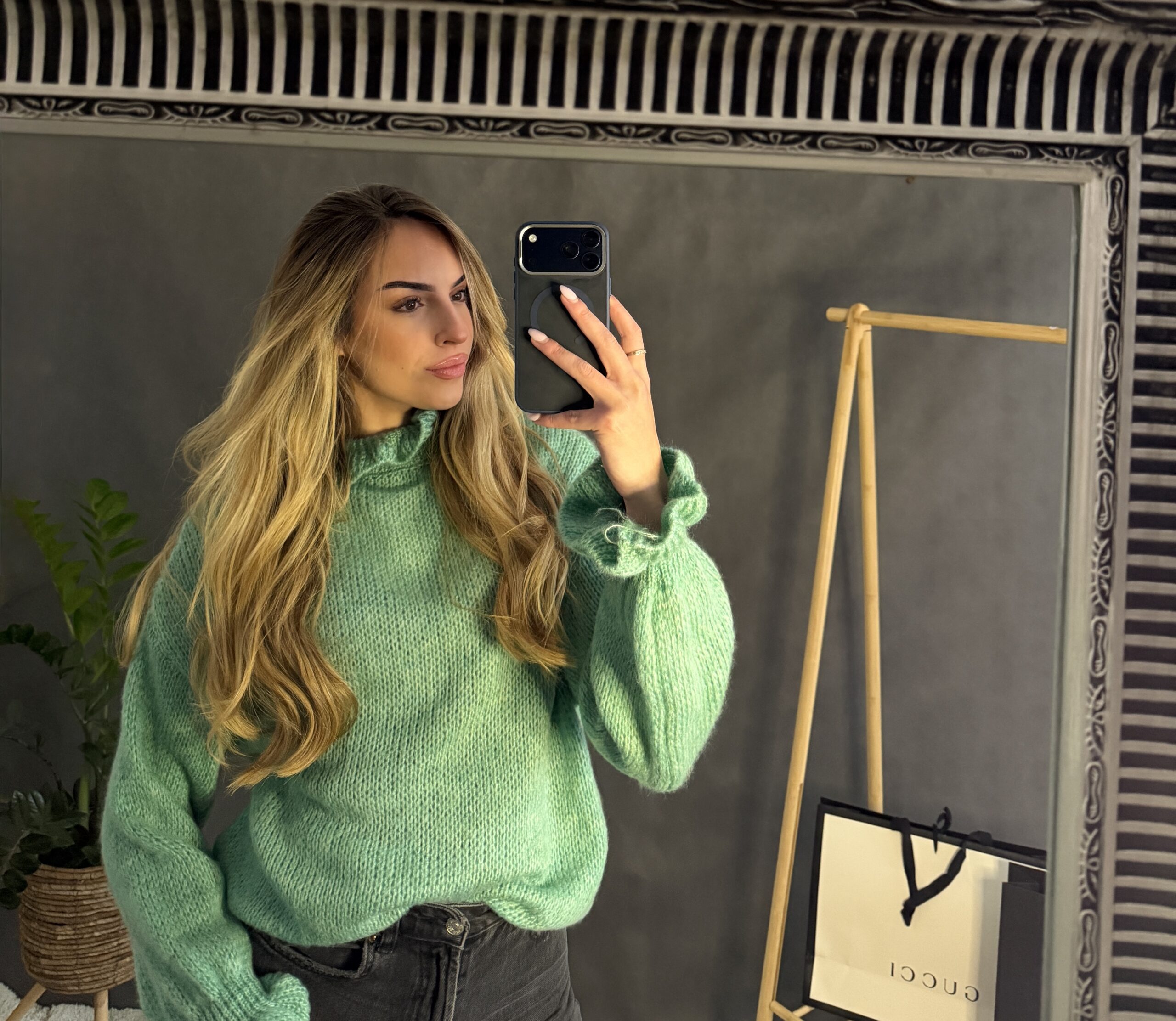 Jemný svetrík, tenkého materiálu so stojčikom.
