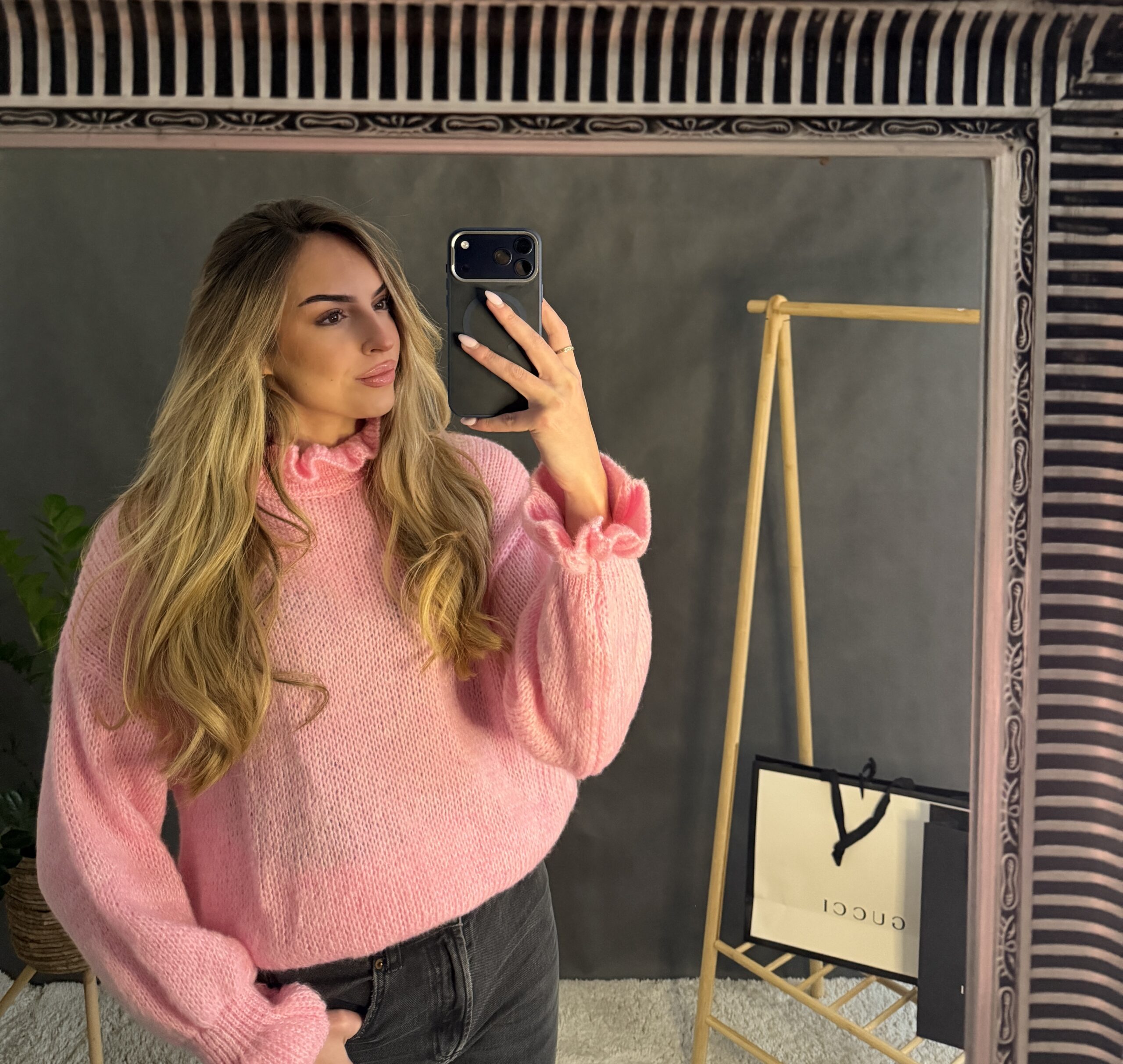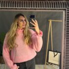 Jemný svetrík, tenkého materiálu so stojčikom.
