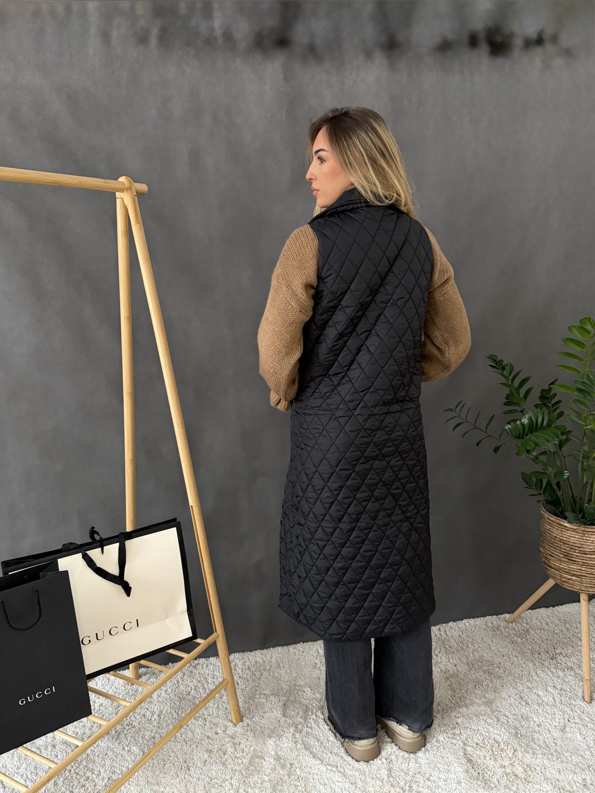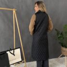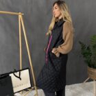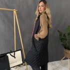 Čierna prešívaná vesta na zips s vreckami.