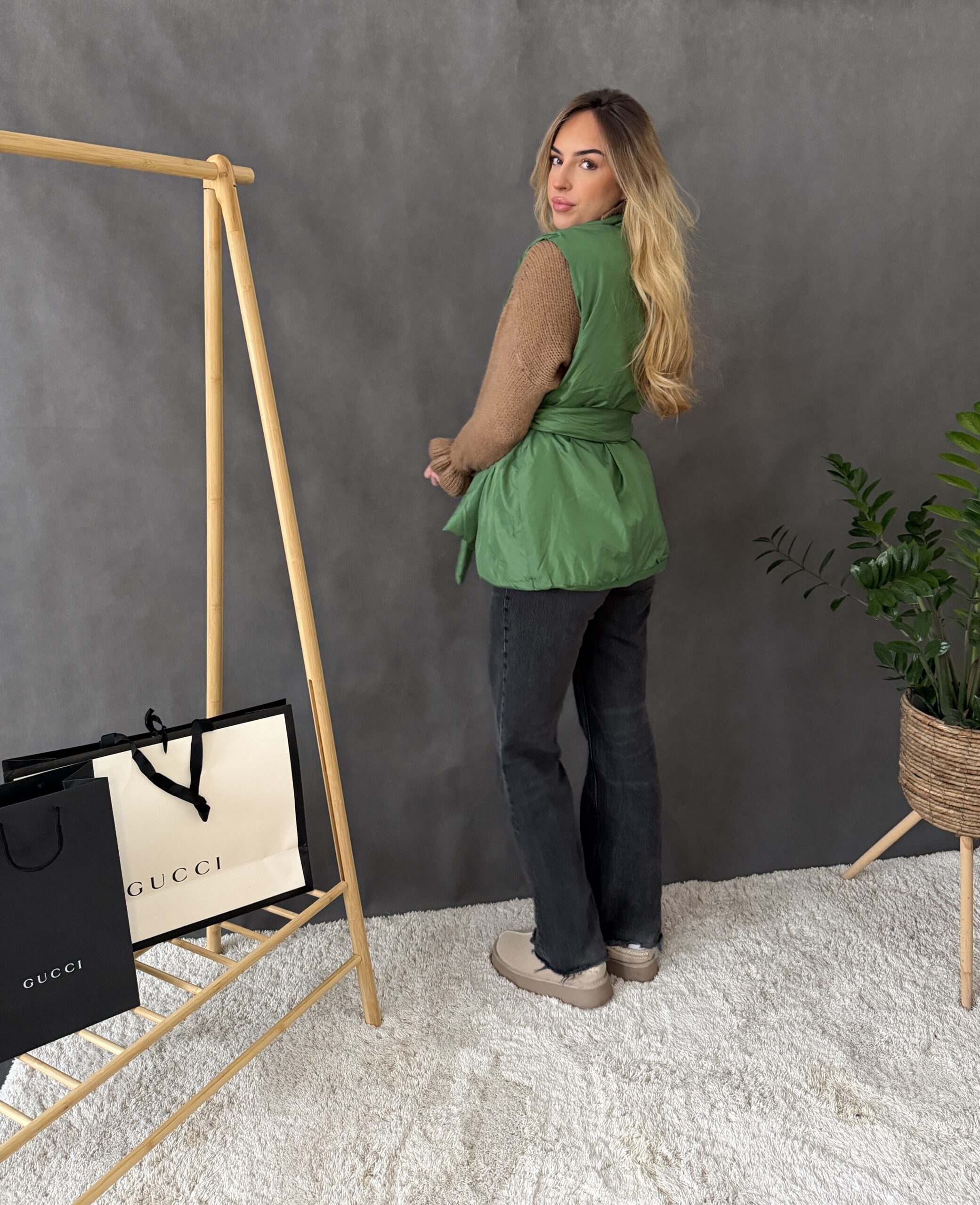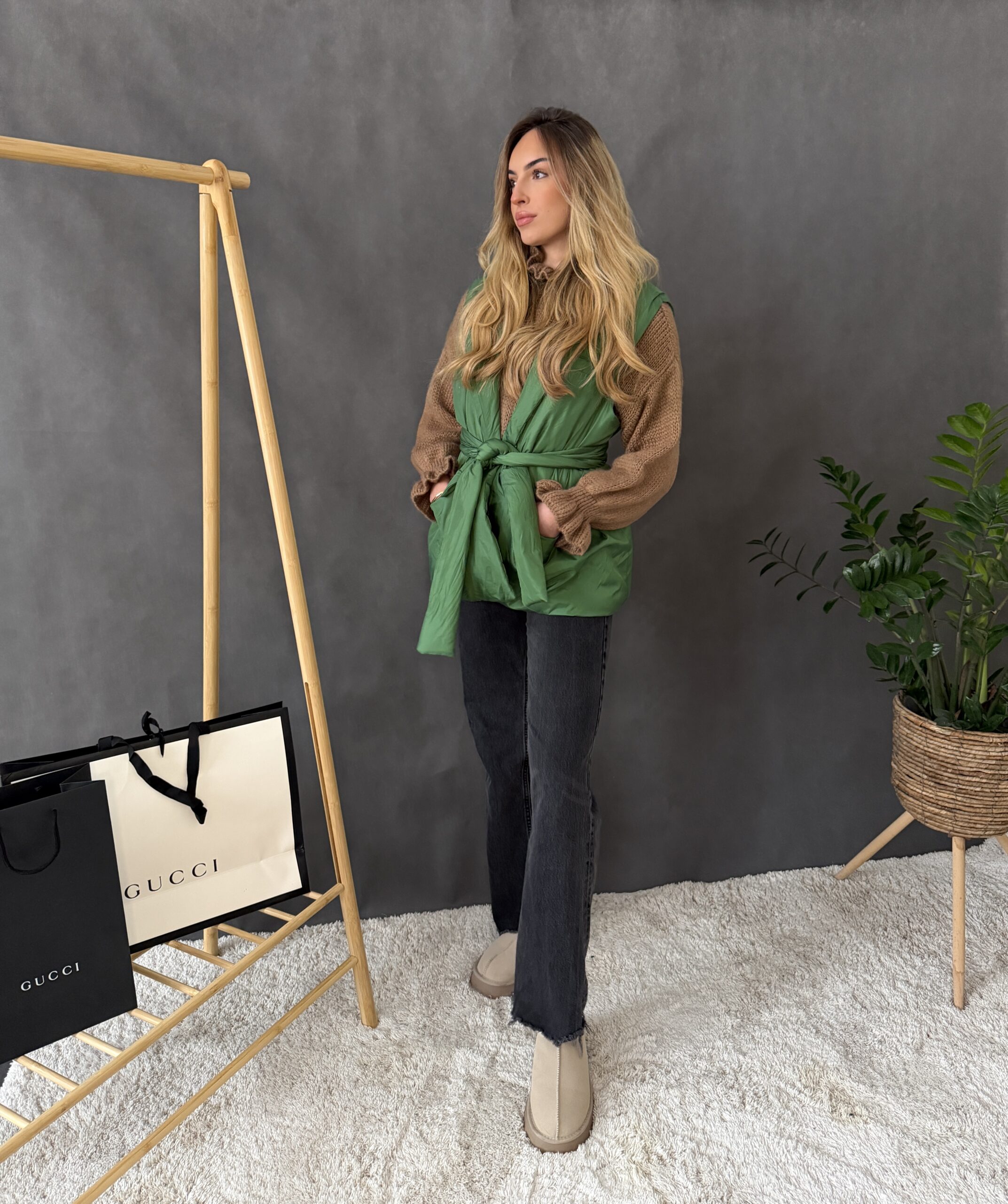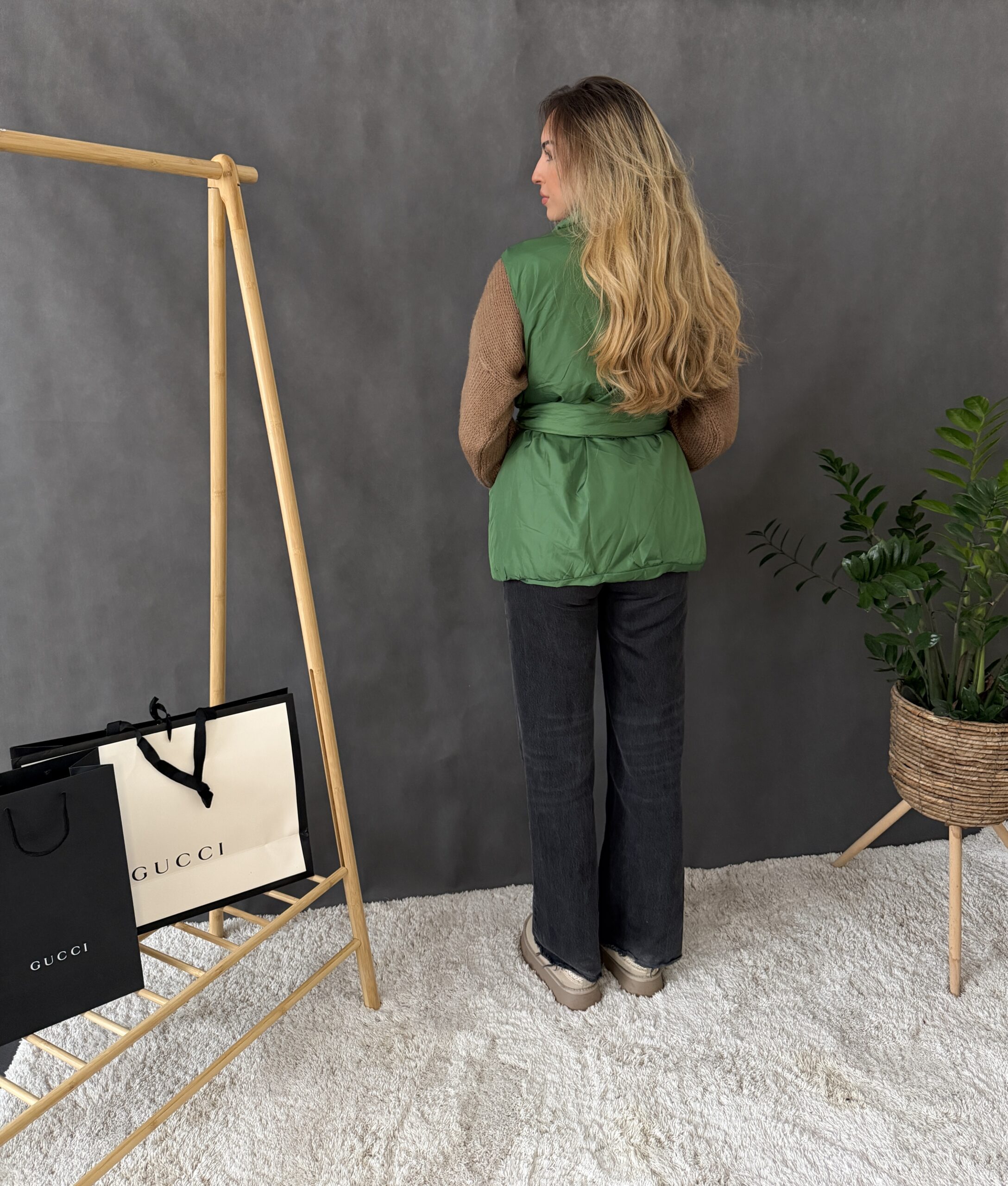 Tenšie dlhšie vesty s vreckami na zaväzovanie.